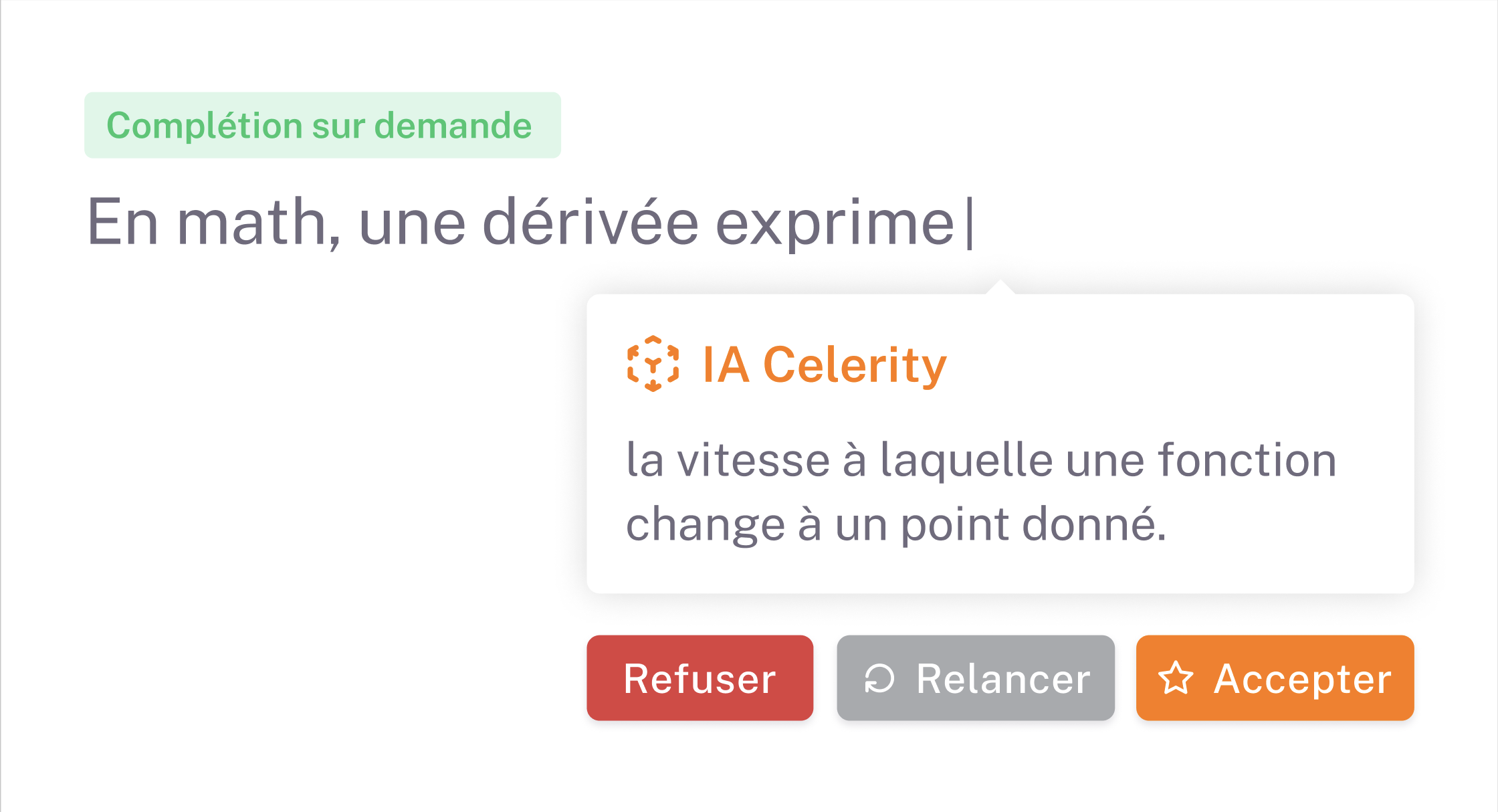 Complétion de phrase Génération de schémas Suggestion d'exemples