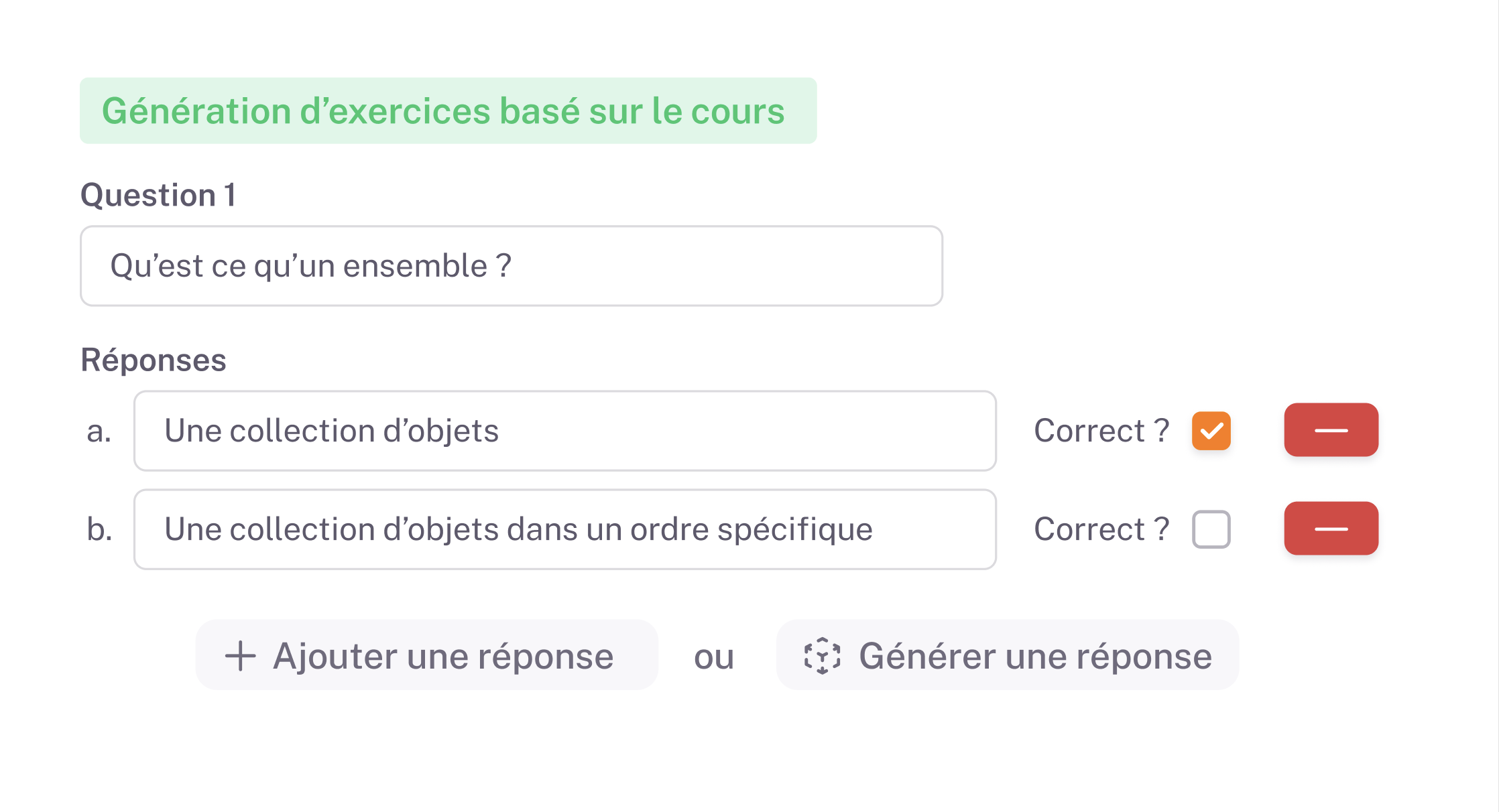 Formulaire de création Génération sur la base du cours Difficulté ajustable