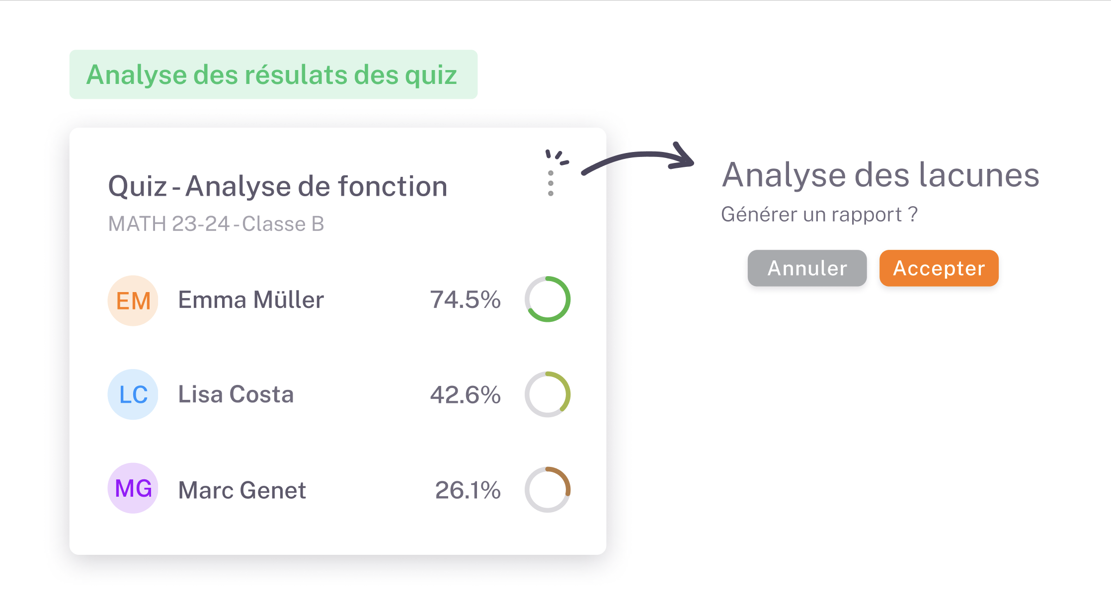 étudiant, en identifiant et en ciblant spécifiquement leurs lacunes. Nous offrons une